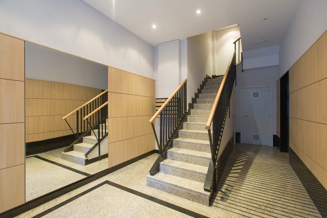 Se entrega la obra de la calle Porrera en Barcelona, donde se ha conseguido instalar un ascensor eléctrico de 4 personas de capacidad en un edificio sin ascensor, debiendo mover la escalera para hacer espacio para la cabina.