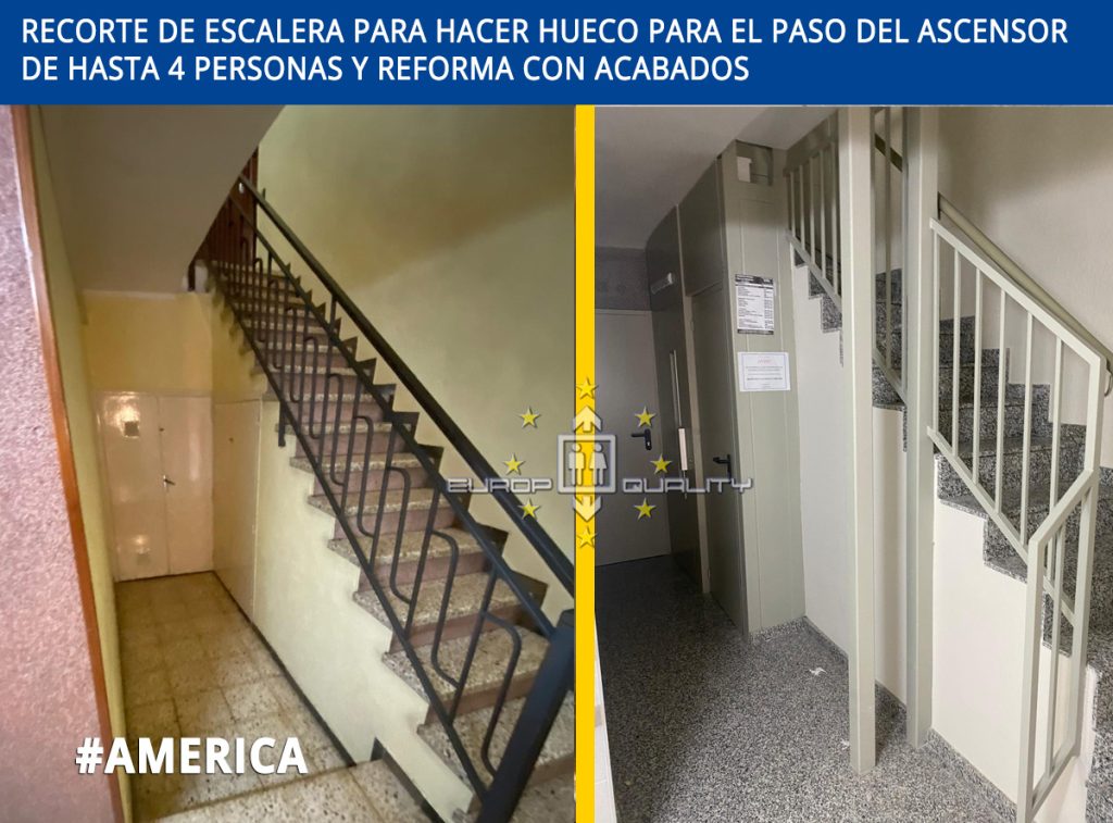 Como explicamos en la noticia de inicio de obra, uno de los mayores retos en la accesibilidad vertical se da cuando el ascensor no llega a nivel de calle, o directamente no existe. En el caso de América 74, nos enfrentamos al desafío de instalar un ascensor lateral en un edificio que actualmente no cuenta con ascensor. Para lograrlo, fue necesario derribar completamente la escalera existente y reconstruirla con suficiente espacio para que pueda circular el nuevo elevador. Lo más impresionante de todo es que este trabajo se ha realizado sin que los vecinos deban abandonar sus hogares en ningún momento, garantizando así su comodidad y tranquilidad durante todo el proceso.