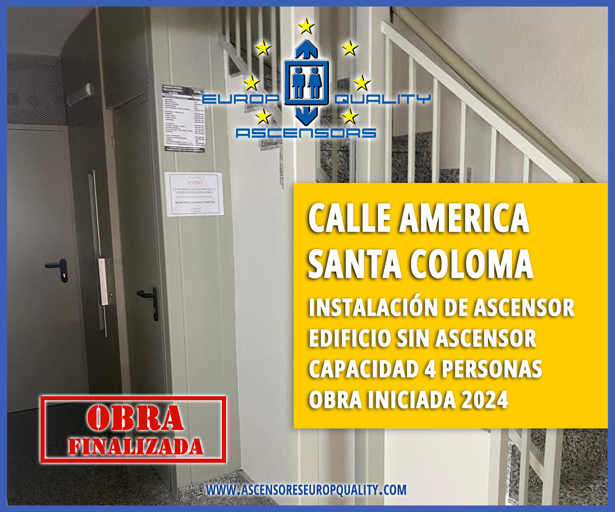En Ascensores Europ Quality nos complace anunciar la finalización de las obras de instalación del ascensor en el edificio situado en calle América número 74, en Santa Coloma de Gramenet. Esta actuación, que comenzamos hace unos meses, se planteó como una respuesta concreta a un problema que afecta a cientos de comunidades: la imposibilidad de acceder desde la calle al portal sin salvar un desnivel por escaleras.