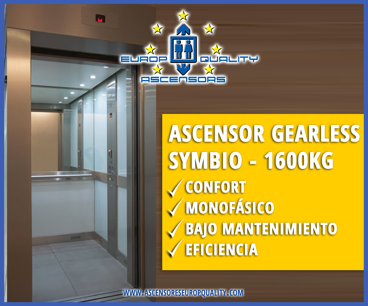 El Ascensor Gearless Symbio es una excelente opción para instalar en edificios de obra nueva o incluso también en edificios existentes. Su capacidad de carga de hasta 1600kg en un gearless es lo que marca la diferencia en este equipo.